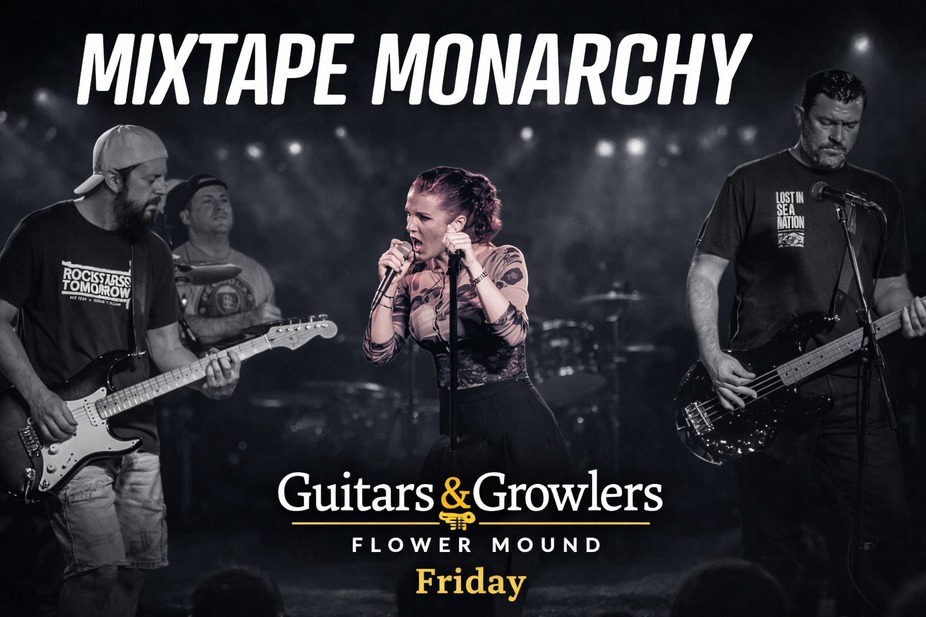 Join us for an electrifying Friday night at Guitars & Growlers Flower Mound with a live performance by Mixtape Monarchy. Get ready for a high-energy show packed with your favorite hits and unforgettable live vibes.